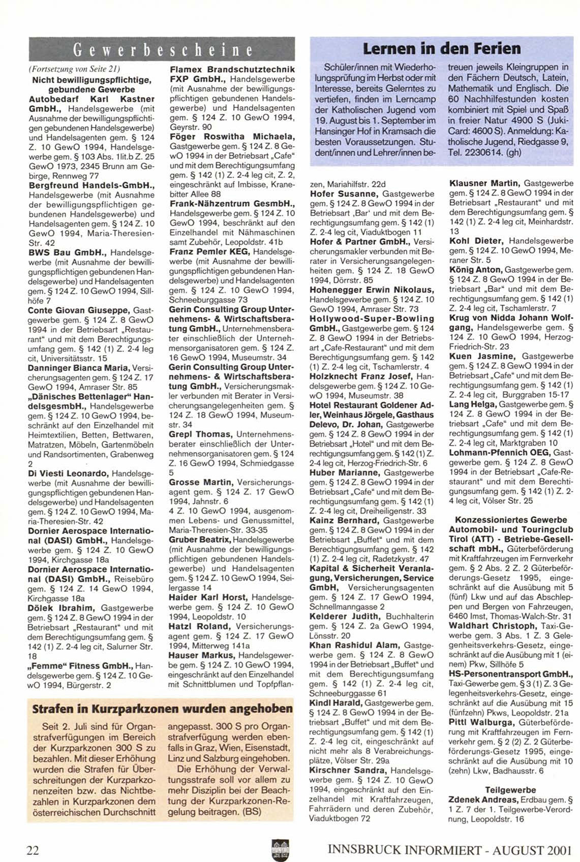 I N N S B R U C K INFORMIERT - A U G U S T 2001