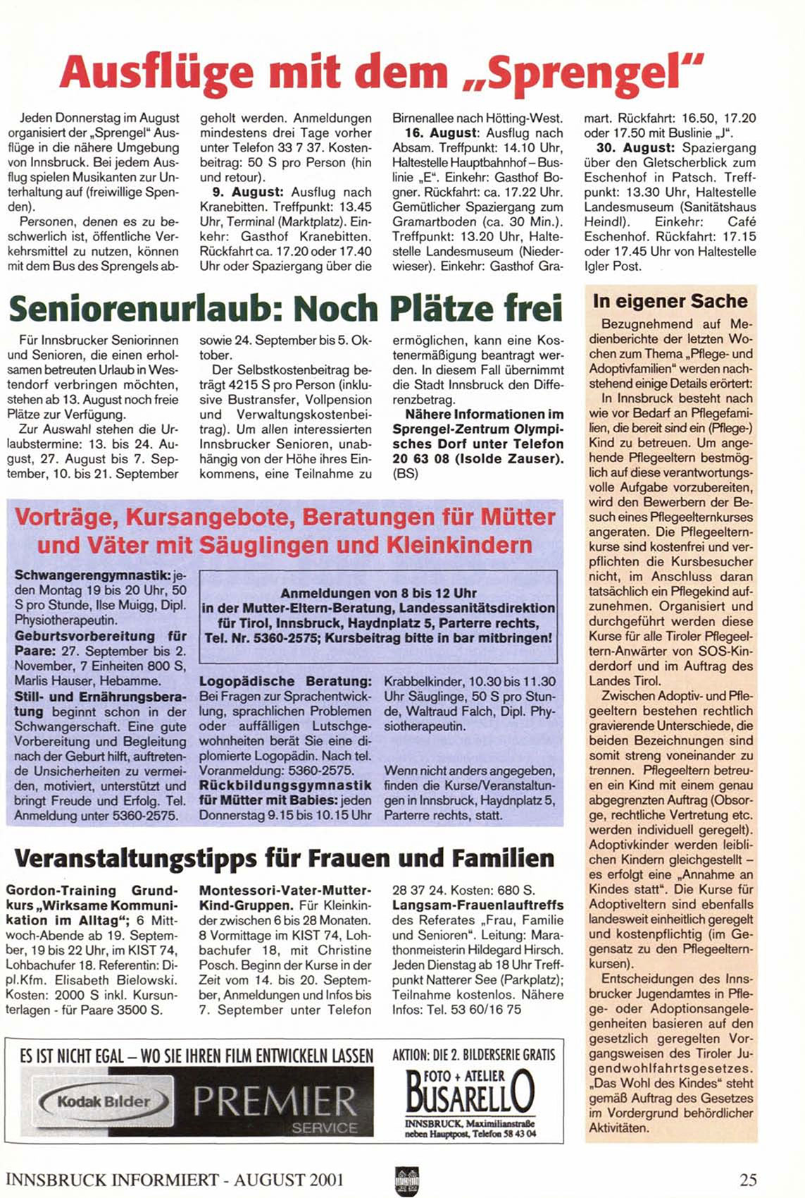 INNSBRUCK INFORMIERT - AUGUST 2001