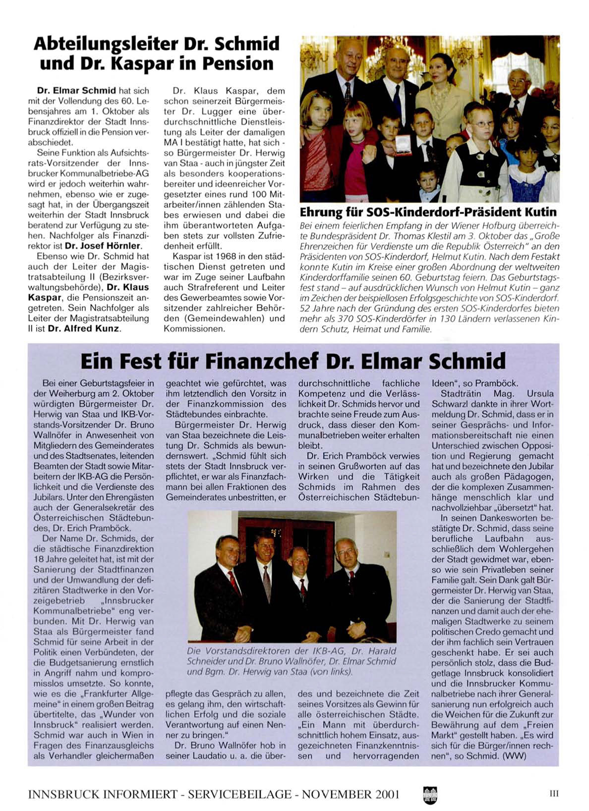 van Staa bezeichnete die Leistung Dr. Schmids als bewundernswert. „Schmid fühlt sich