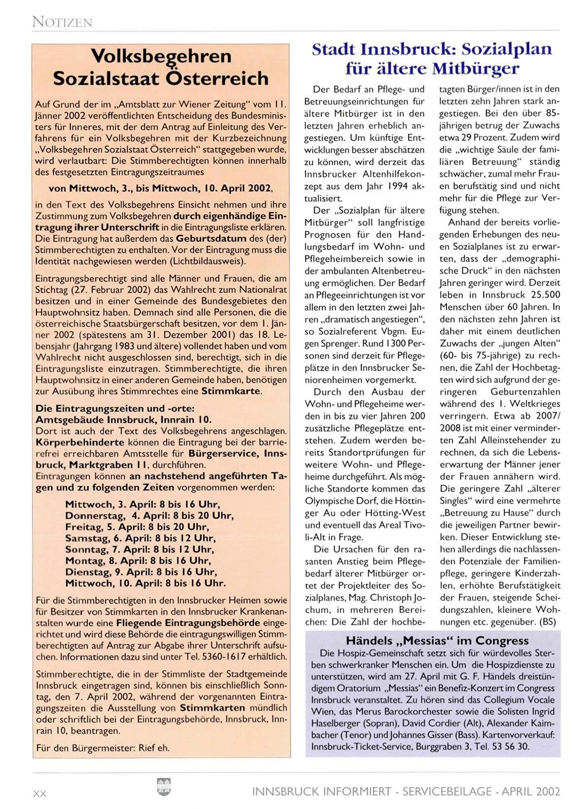 INNSBRUCK INFORMIERT - SERVICEBEILAGE -APRIL 2002
