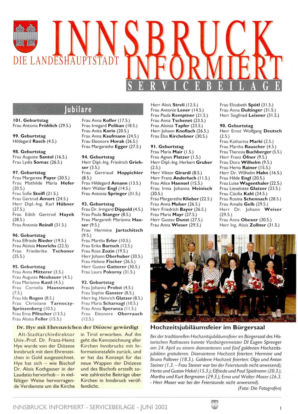 INNSBRUCK INFORMIERT - SERVICEBEILAGE -JUNI 2002