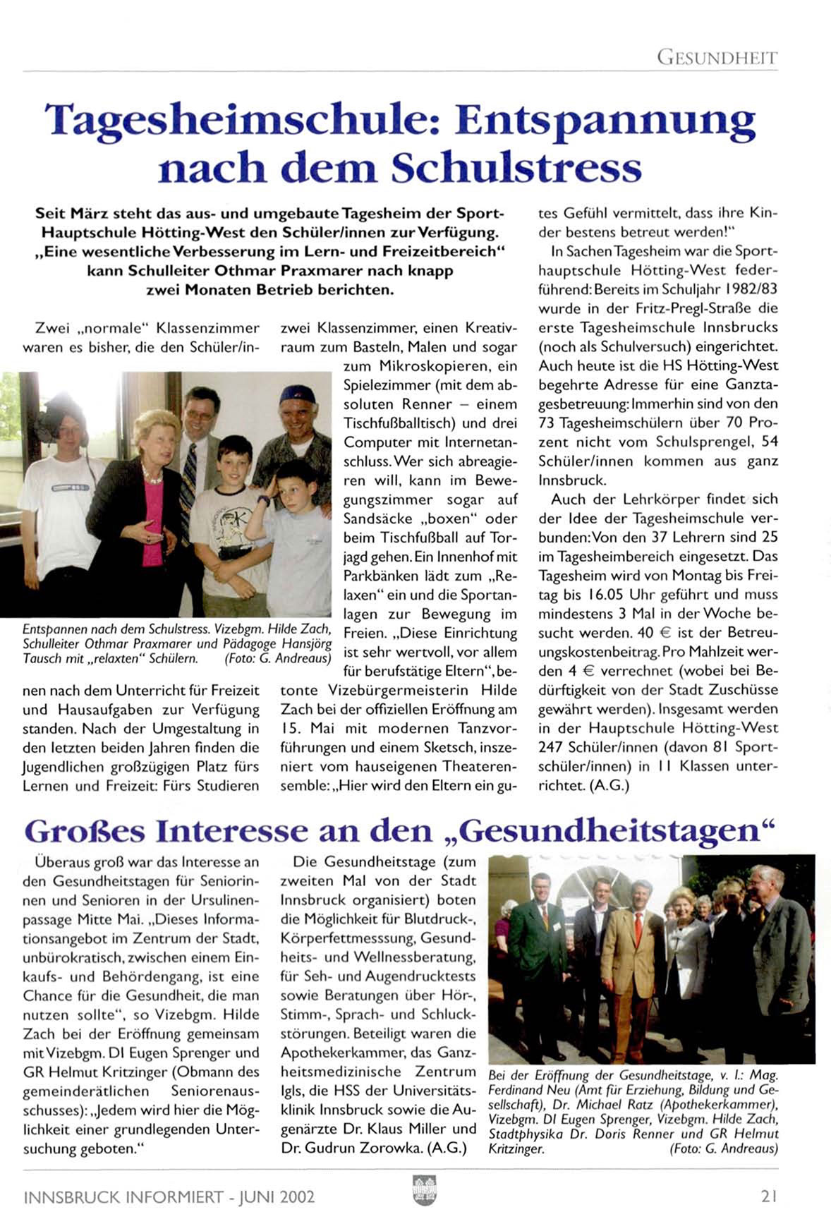 Igls, die HSS der Universitär- Ferdinand Neu (Amt fur Erziehung, Bildung und Geklinik Innsbruck sowie die A u - sfllschaft) ?"• " ^ , Ratz (Apothekerkammer),