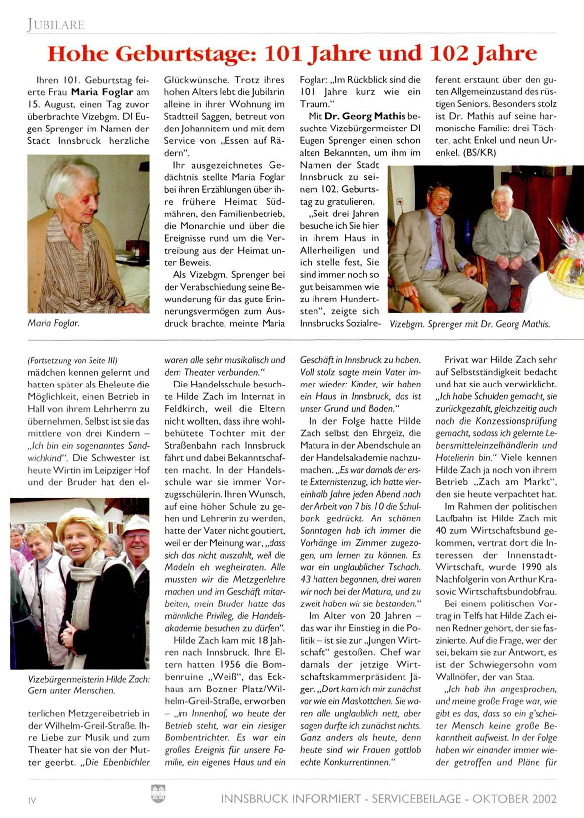 Innsbruck zu seinem 102. Geburtstag zu gratulieren.