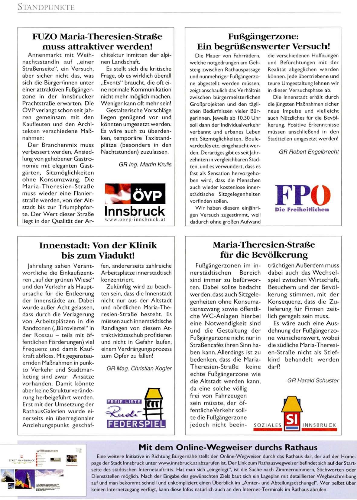 Eine weitere Initiative in Richtung Bürgernähe stellt der Online-Wegweiser durch das Rathaus dar, der auf der Homepage der Stadt Innsbruck unter www.innsbruck.at abzurufen ist. Der Link zum Rathauswegweiser befindet sich auf der Startseite des städtischen Internetauftritts. Hat man sich „eingelegt", ist die Suche nach Zimmernummern, Stichworten oder