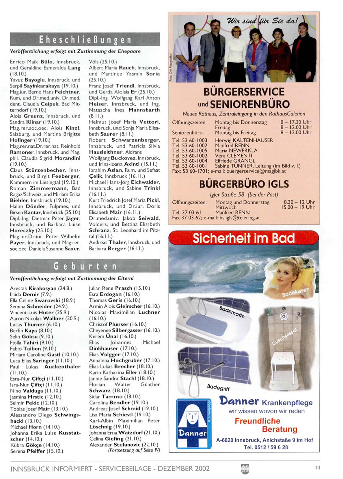 INNSBRUCK INFORMIERT - SERVICEBEILAGE - DEZEMBER 2002