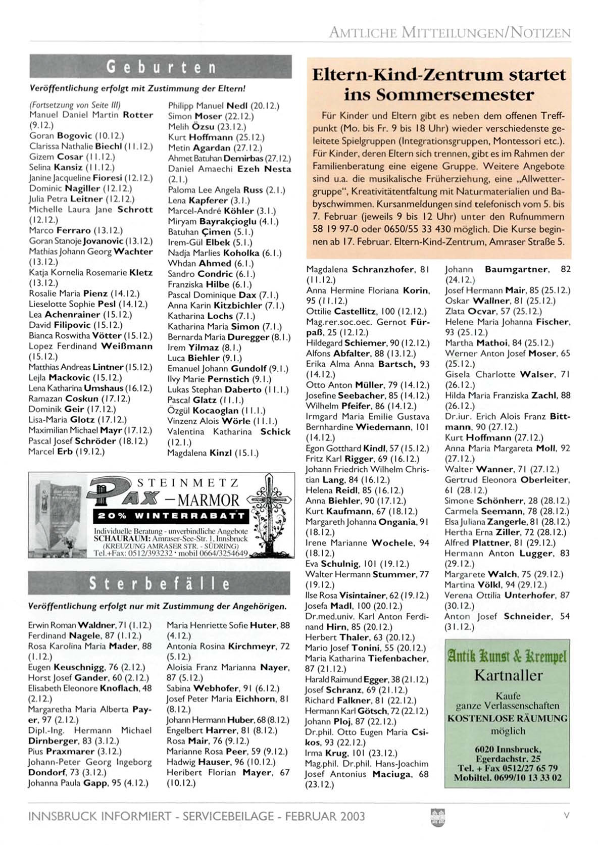 INNSBRUCK INFORMIERT - SERVICEBEILAGE - FEBRUAR 2003
