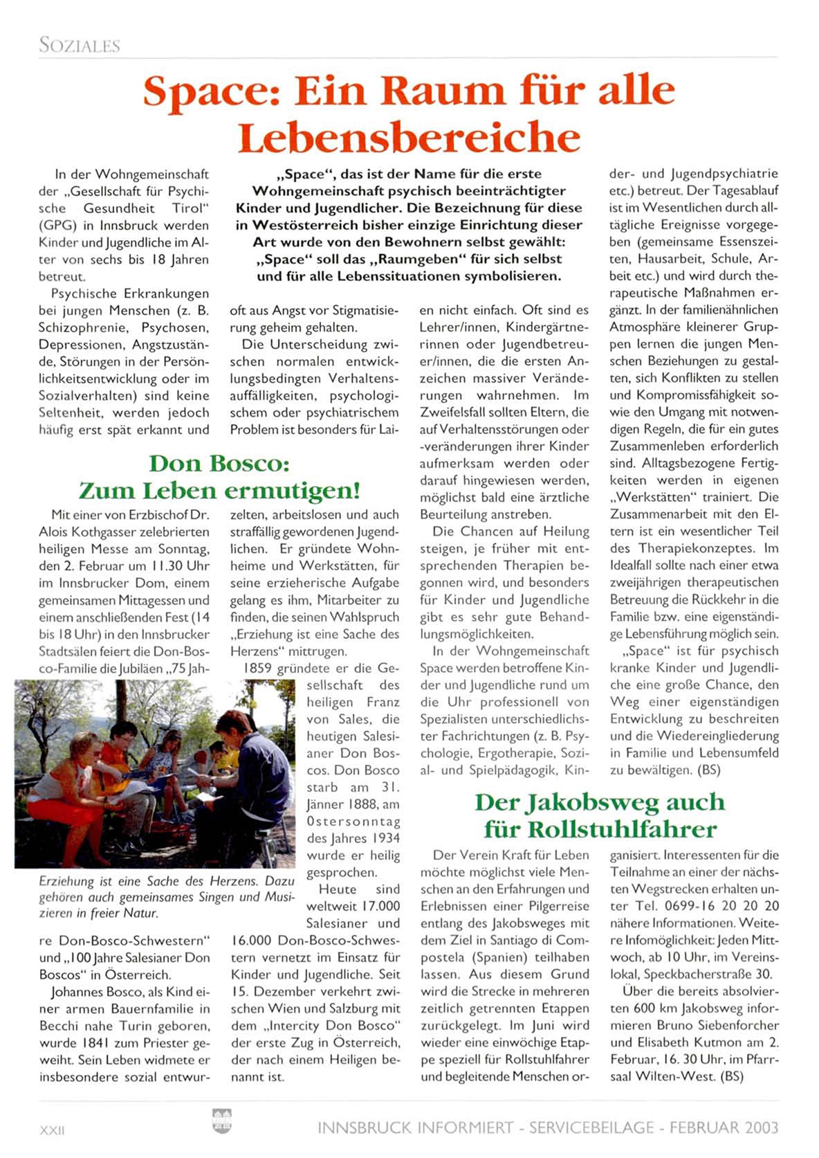 INNSBRUCK INFORMIERT - SERVICEBEILAGE - FEBRUAR 2003