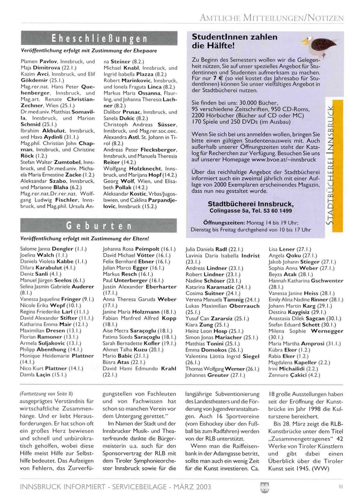 INNSBRUCK INFORMIERT - SERVICEBEILAGE - MÄRZ 2003