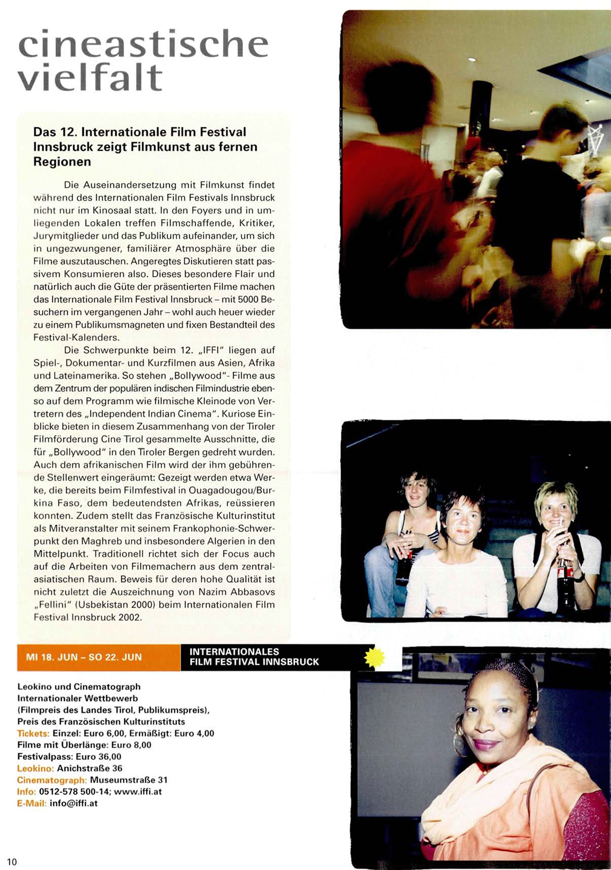 das Internationale Film Festival I n n s b r u c k - mit 5000 Besuchern im vergangenen J a h r - w o h l auch heuer wieder