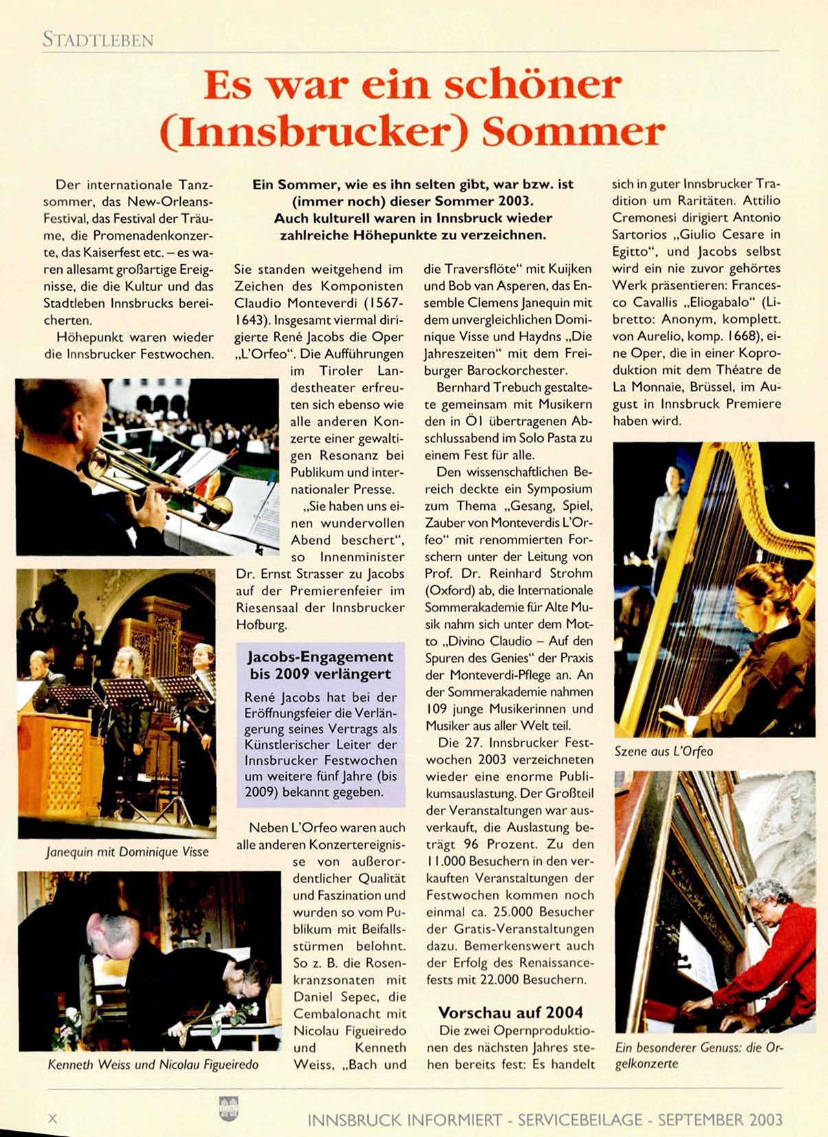 Die 27. Innsbrucker Festwochen 2003 verzeichneten