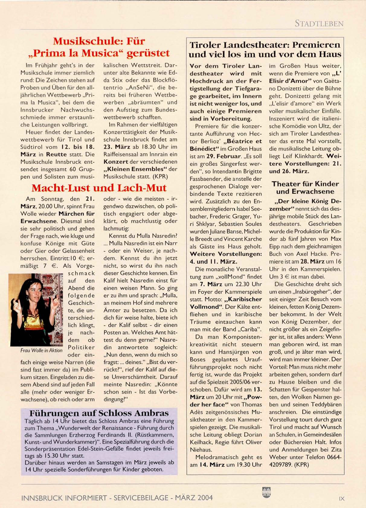 INNSBRUCK INFORMIERT - SERVICEBEILAGE - MÄRZ 2004