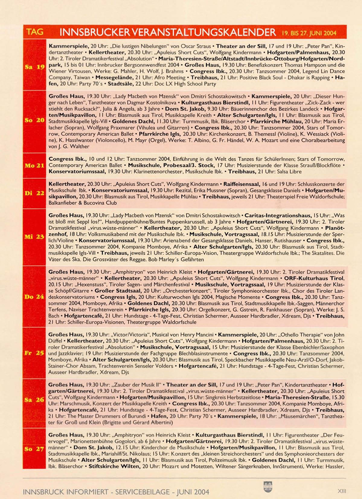 INNSBRUCK INFORMIERT - SERVICEBEILAGE -JUNI 2004