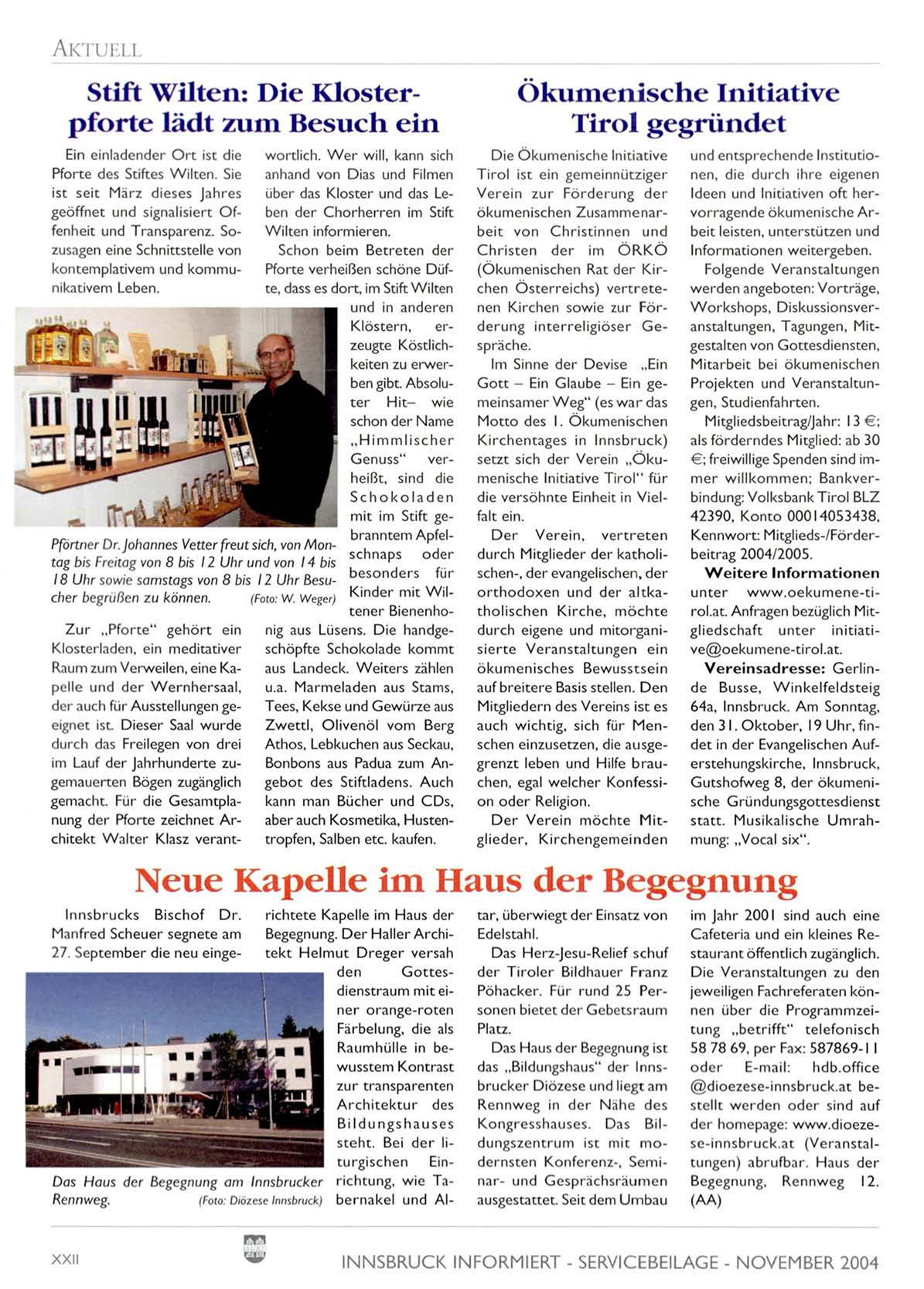 INNSBRUCK INFORMIERT - SERVICEBEILAGE - NOVEMBER 2004