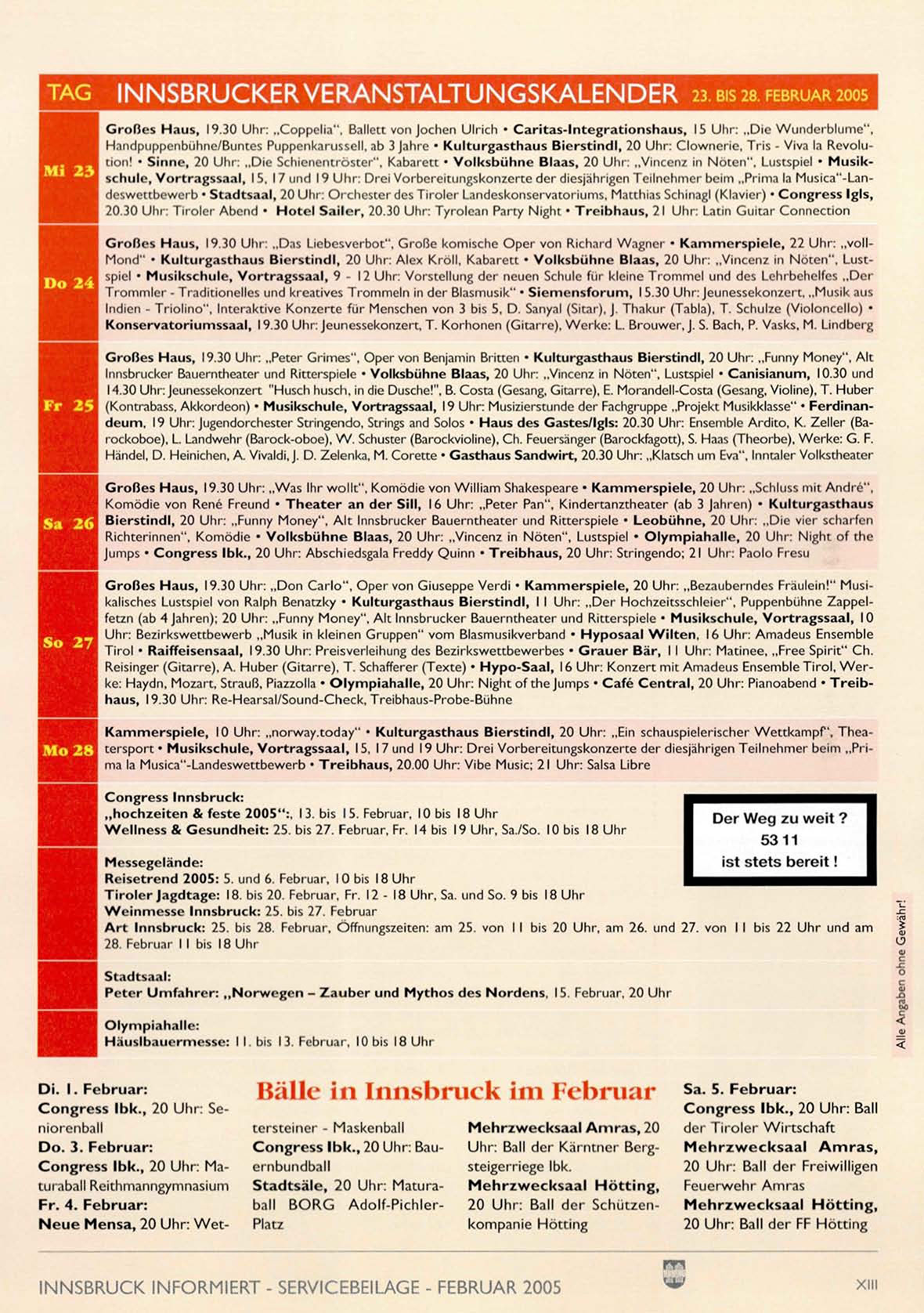INNSBRUCKER VERANSTALTUNGSKALENDER 23. BIS 28. FEBRUAR 2005