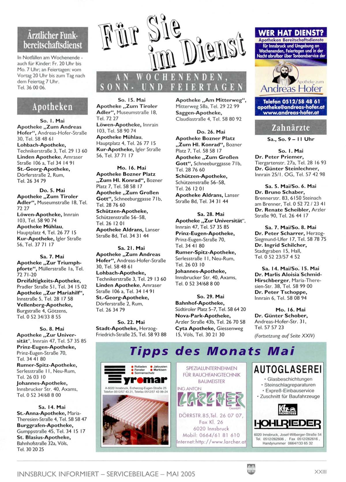 INNSBRUCK INFORMIERT - SERVICEBEILAGE - MAI 2005