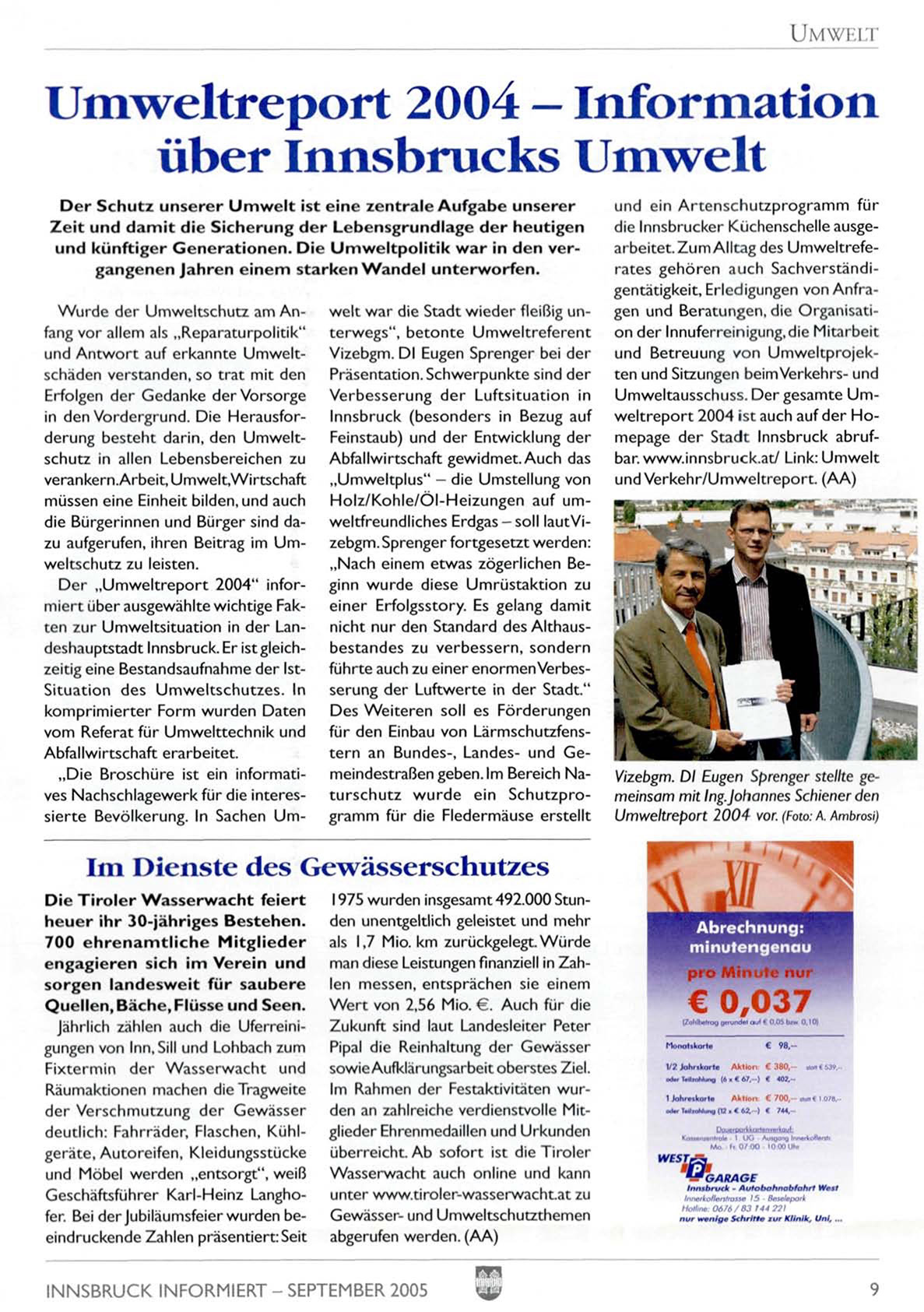 Umweltausschuss. Der gesamte U m weltreport 2004 ist auch auf der H o mepage der Stadt Innsbruck abrufbar, www.innsbruck.at/ Link: Umwelt