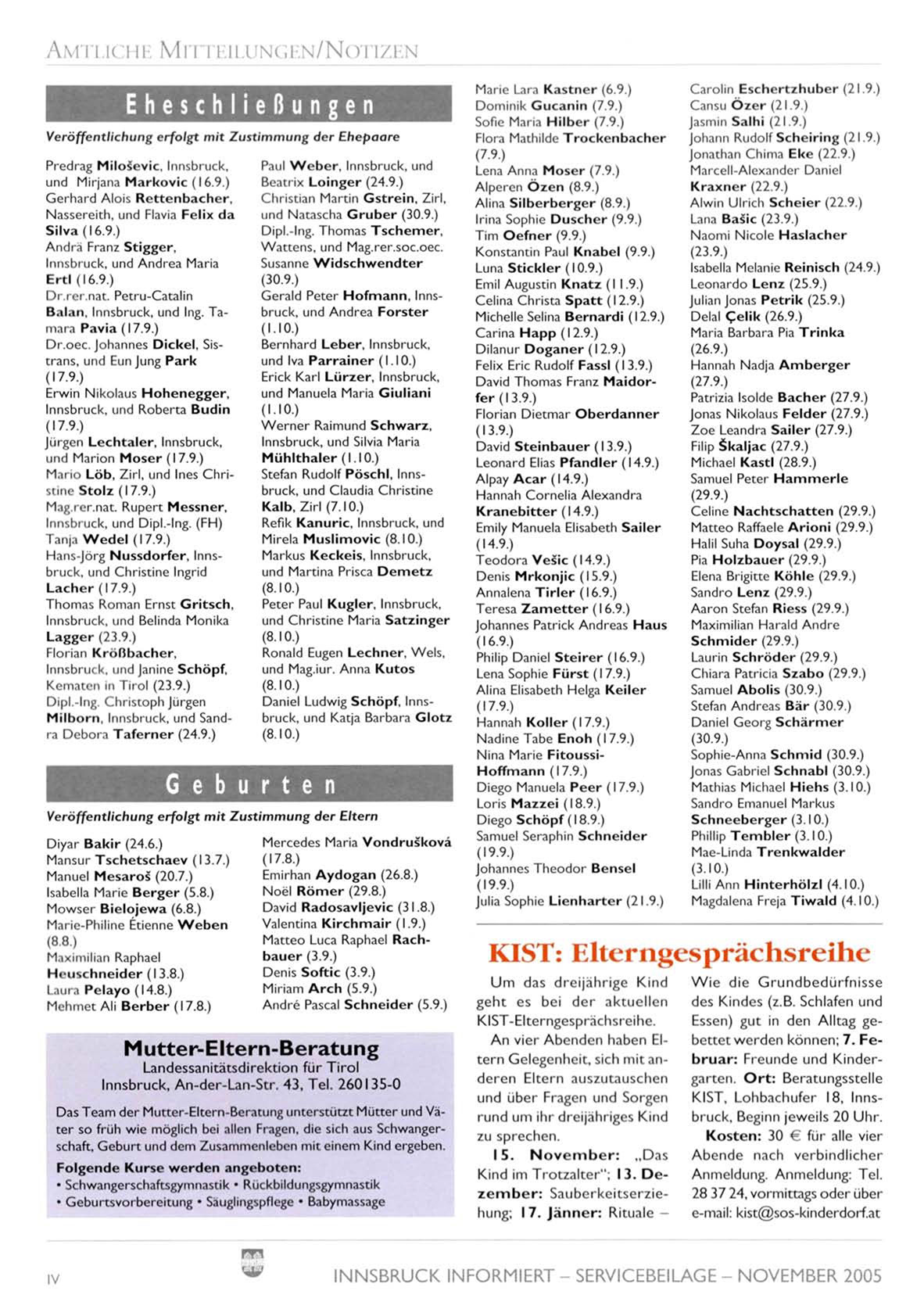 INNSBRUCK INFORMIERT - SERVICEBEILAGE - NOVEMBER 2005