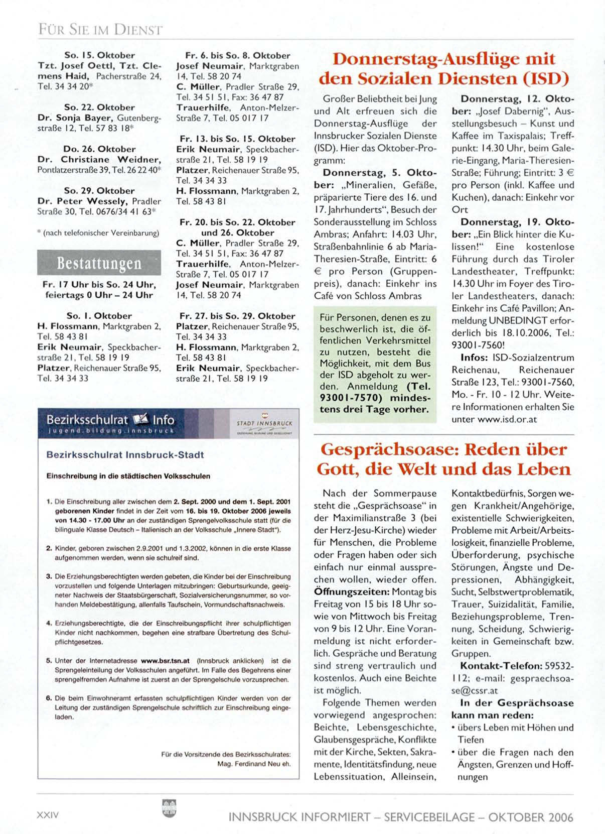 INNSBRUCK INFORMIERT - SERVICEBEILAGE - OKTOBER 2006