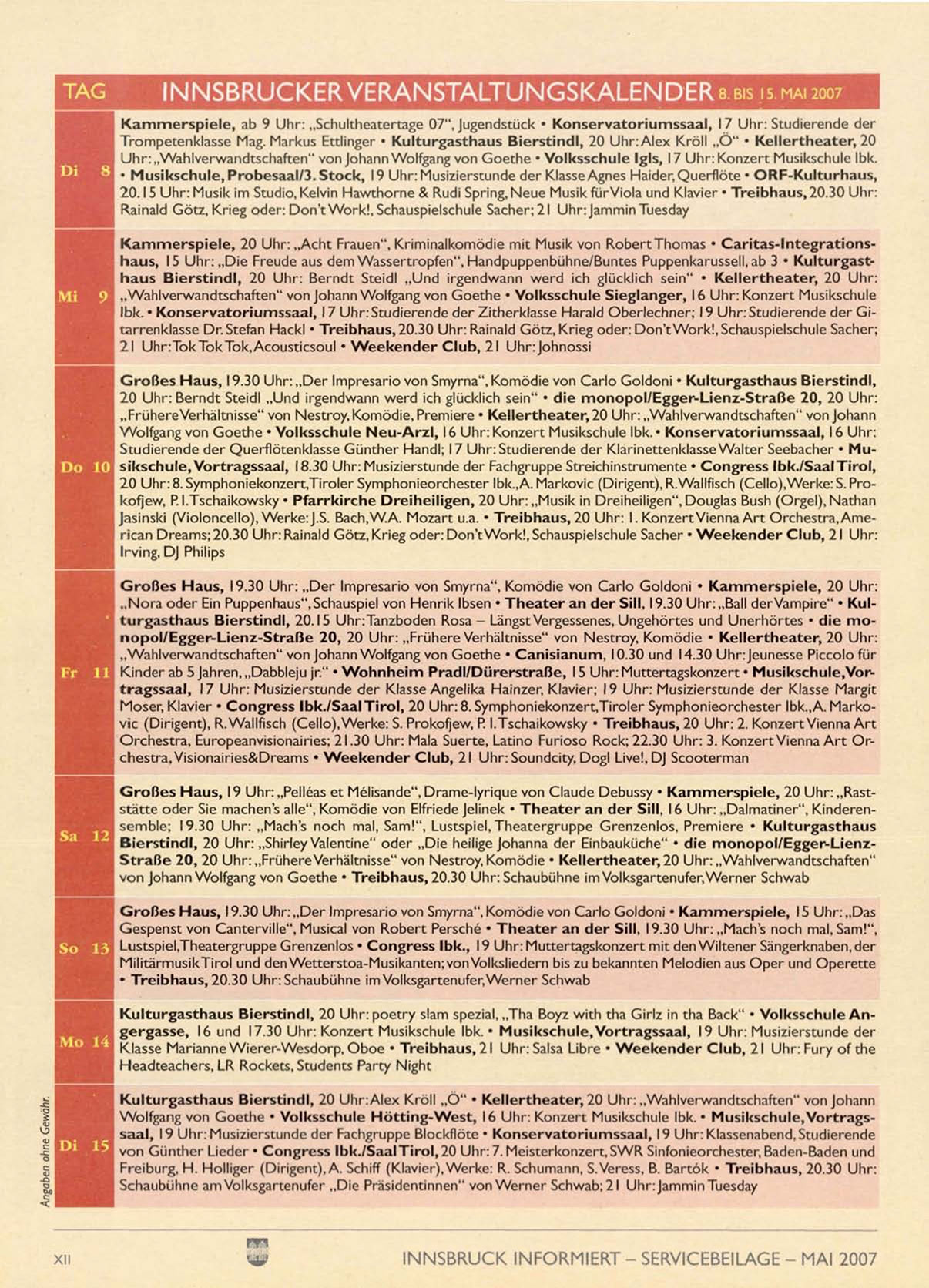 I N N S B R U C K E R V E R A N S T A L T U N G S K A L E N D E R s BIS 15. MAI 2007