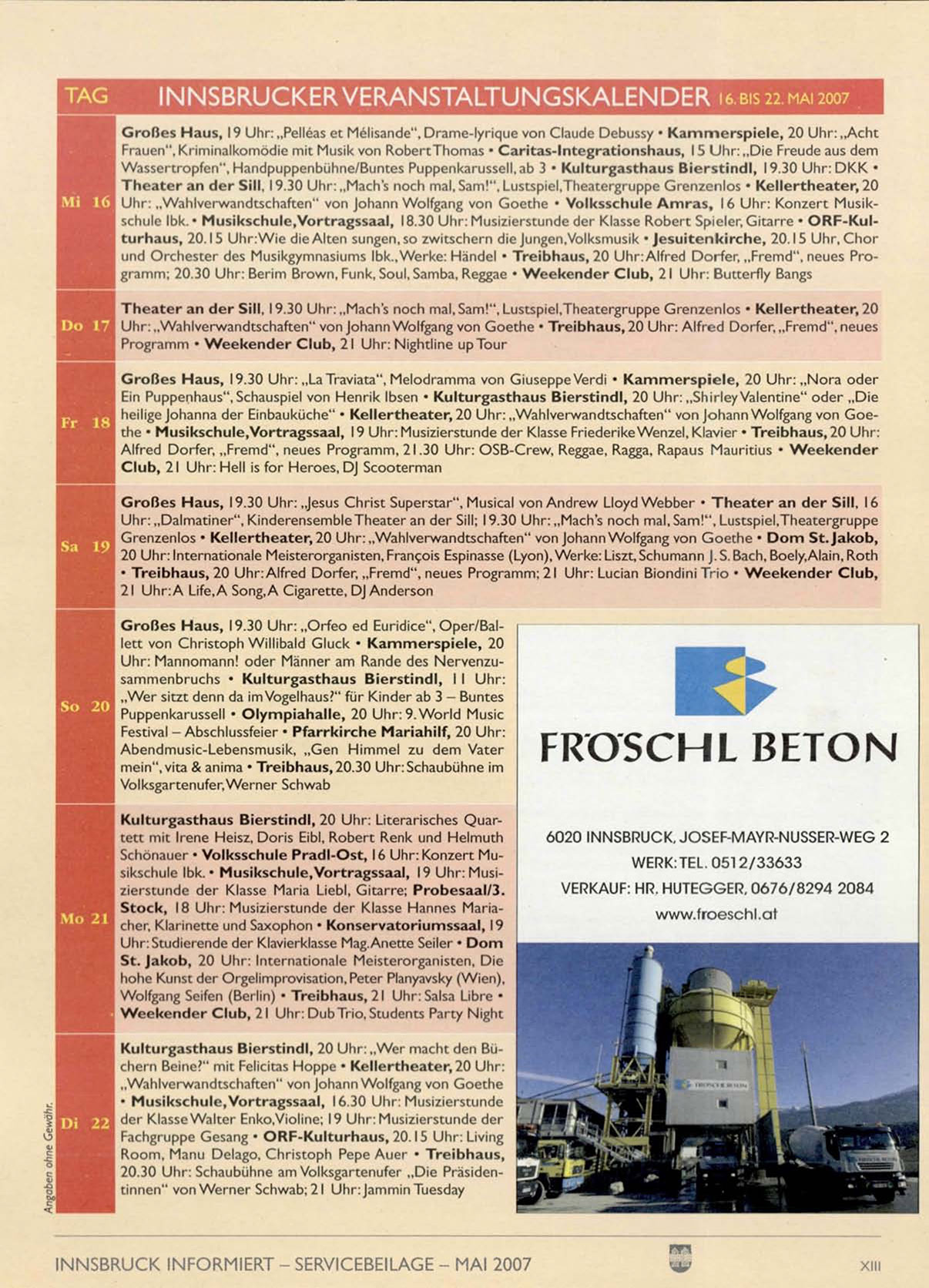 I N N S B R U C K E R V E R A N S T A L T U N G S K A L E N D E R 16. BIS 22. MAI 2007