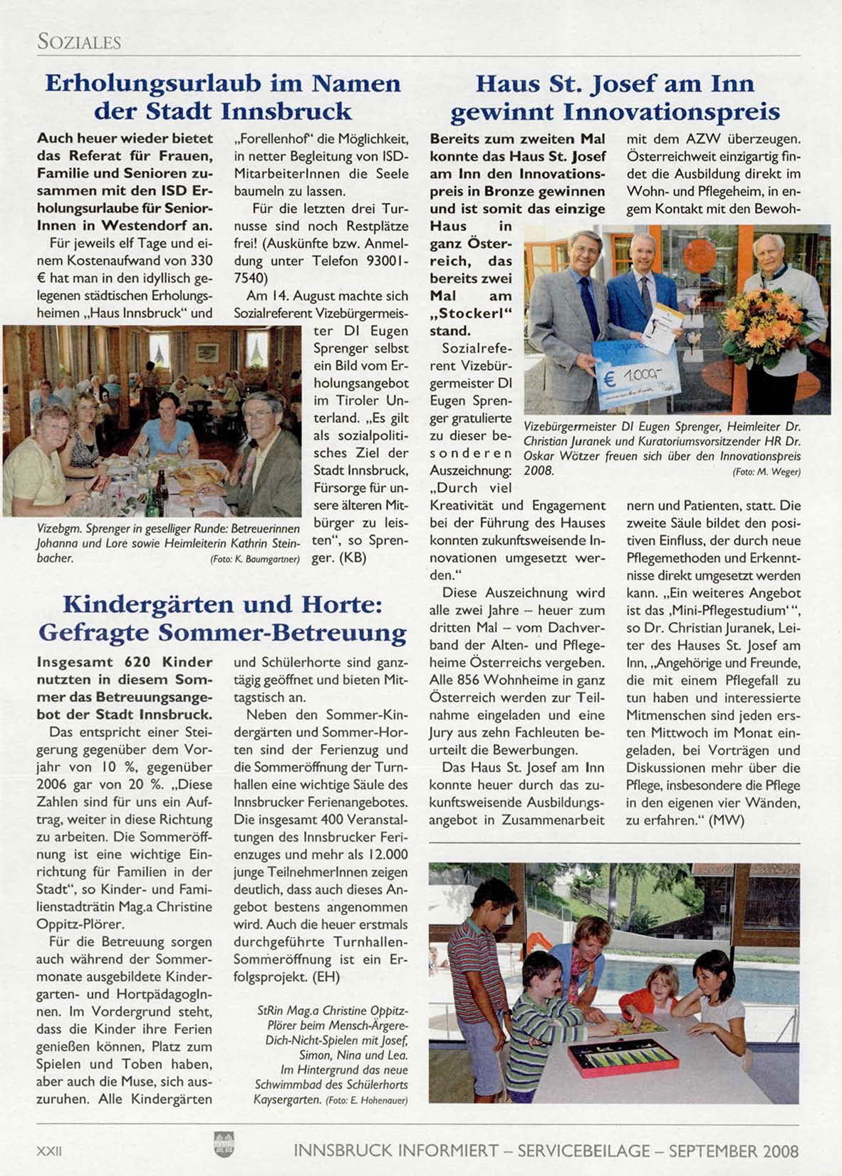 INNSBRUCK INFORMIERT - SERVICEBEILAGE - SEPTEMBER 2008