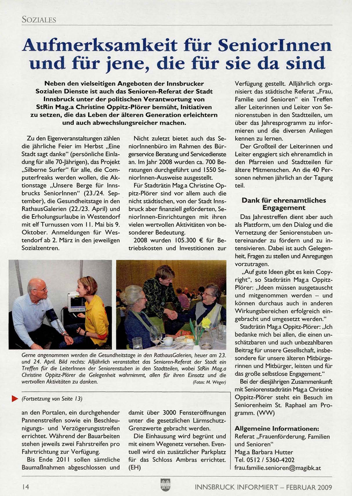 „Silberne Surfer" für alle, die C o m puterfreaks werden wollen, die Aktionstage „Unsere Berge für Innsbrucks Seniorinnen" (23724. September), die Gesundheitstage in den