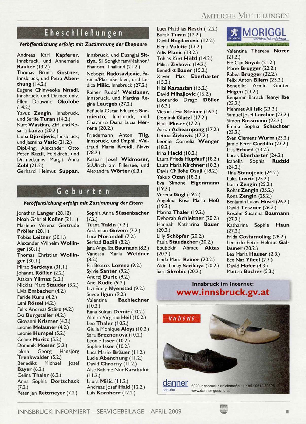 INNSBRUCK INFORMIERT - SERViCEBEILAGE - APRIL 2009