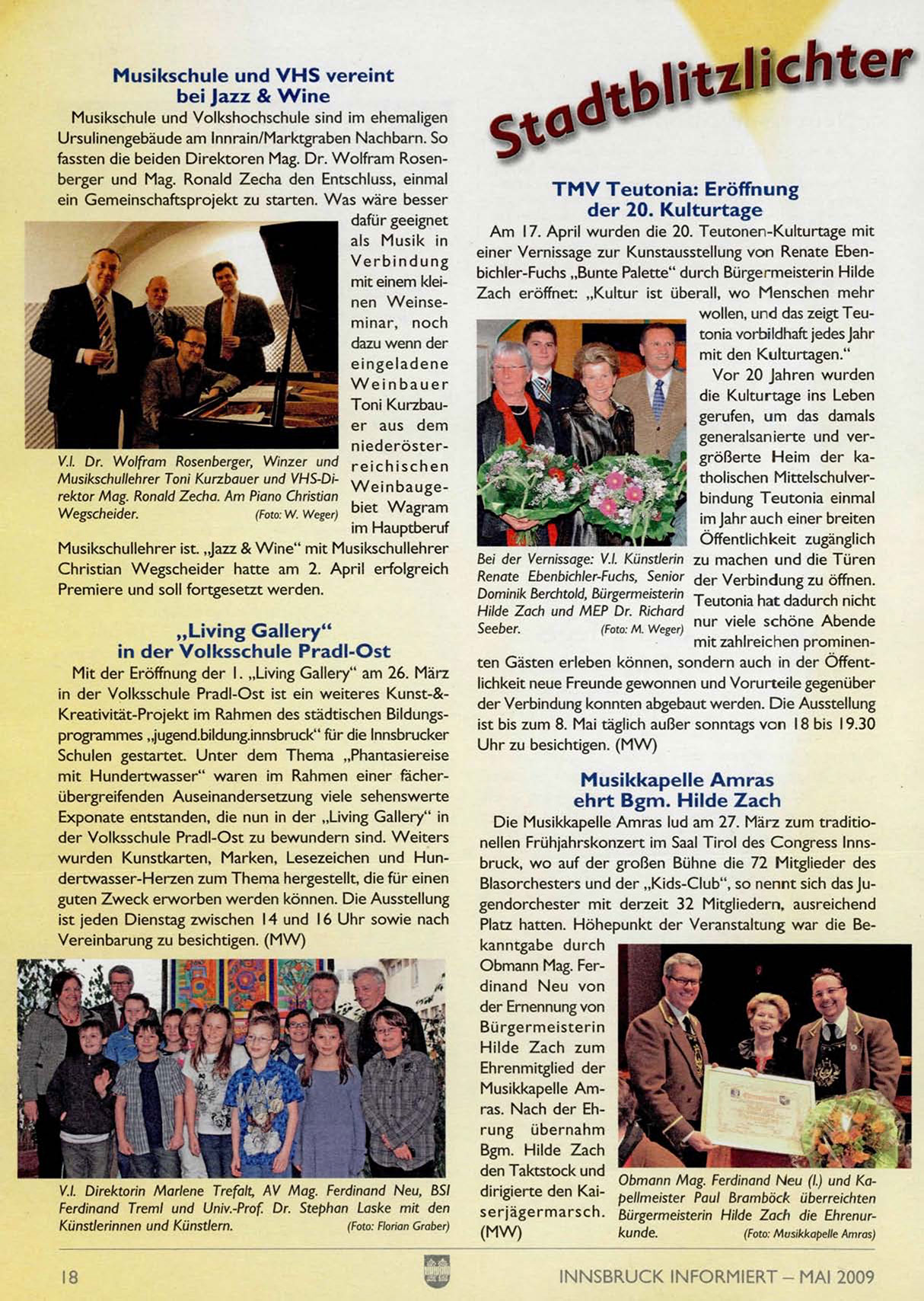 Ferdinand Tremi und Univ.-Prof. Dr. Stephan Laske mit den s e r j ä g e r m a r s c h . Bürgermeisterin Hilde Zach die EhrenurKünstlerinnen und Künstlern.