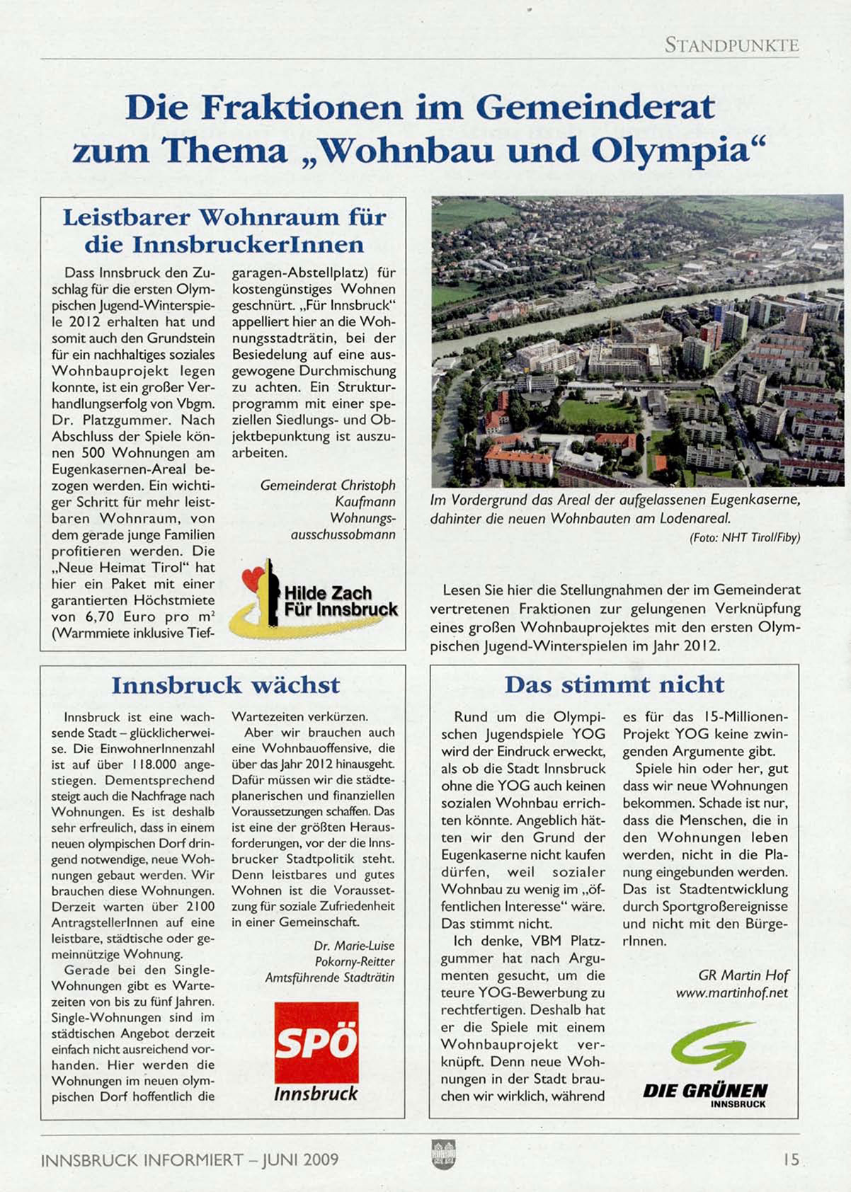 Dass Innsbruck den Z u schlag für die ersten O l y m pischen Jugend-Winterspiele 2012 erhalten hat und