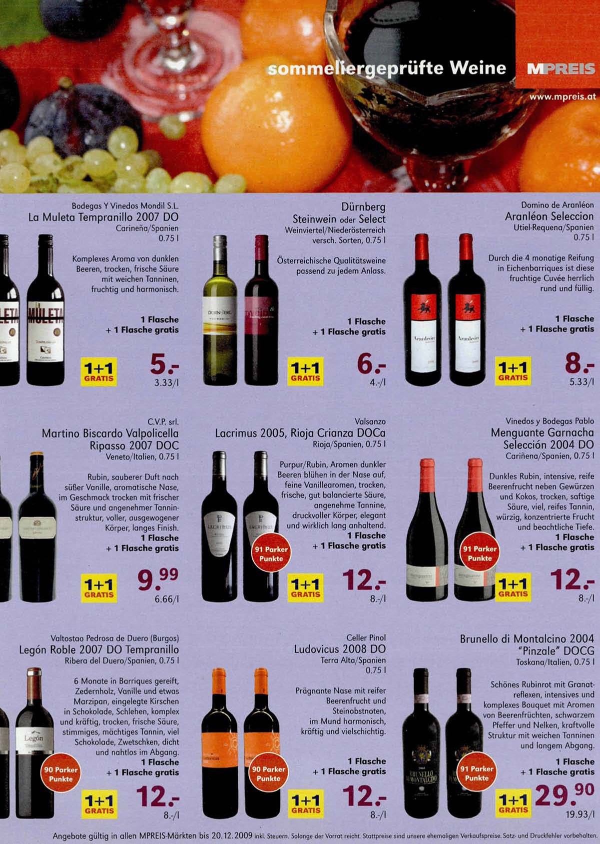 Angebote gültig in allen MPREIS-Märkten bis 20.12.2009 inkl. Steuern. Solange der Vorrat reicht. Stattpreise sind unsere ehemaligen Verkaufspreise. Satz-und Druckfehler vorbehalten.