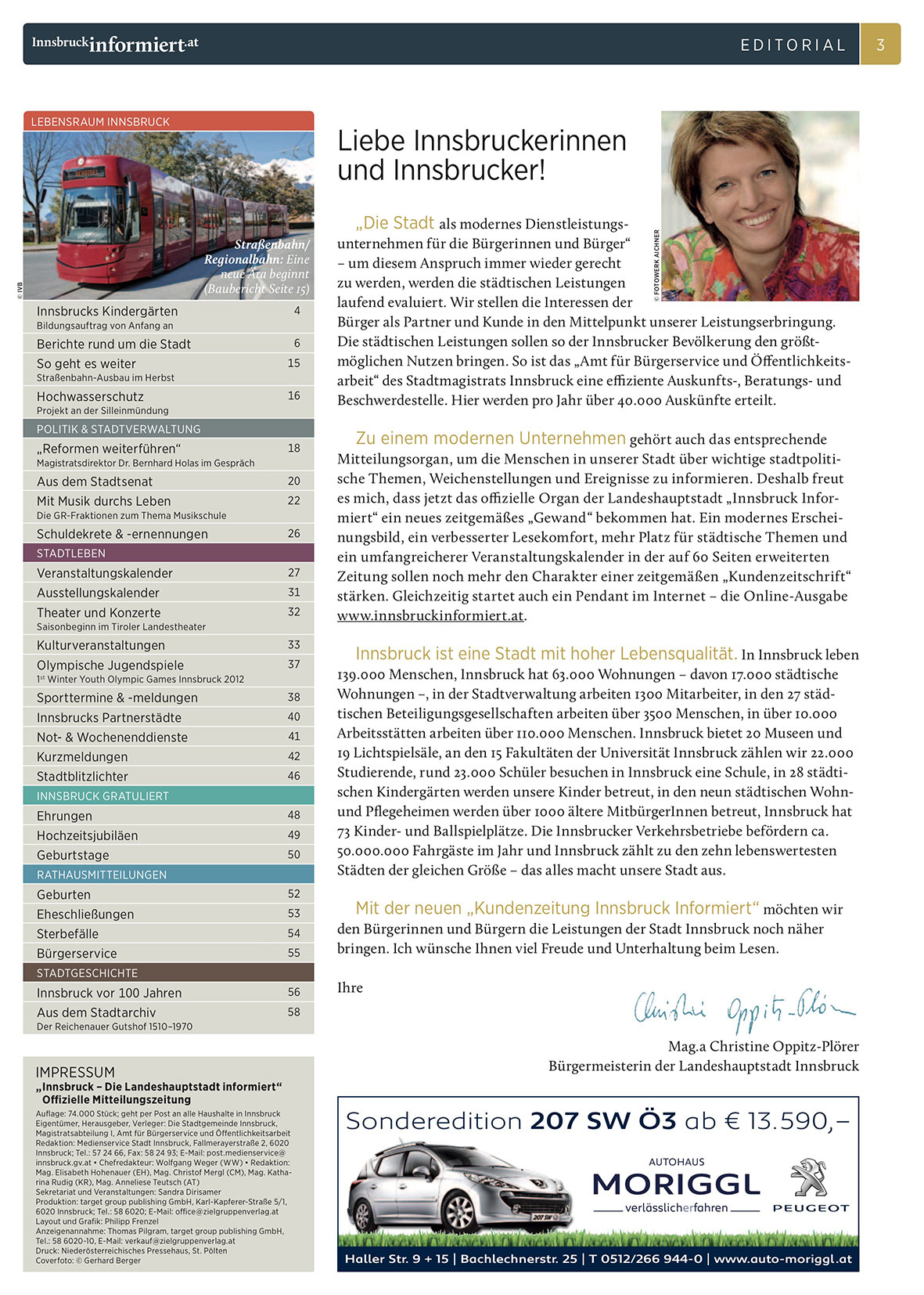 Auflage: 74.000 Stück; geht per Post an alle Haushalte in Innsbruck