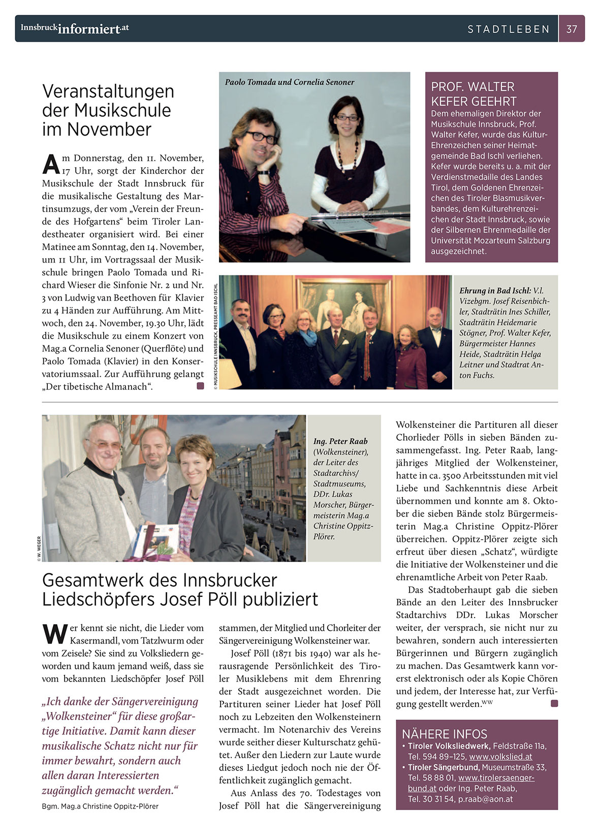 Tel. 58 88 01, www.tirolersaengerbund.at oder Ing. Peter Raab,