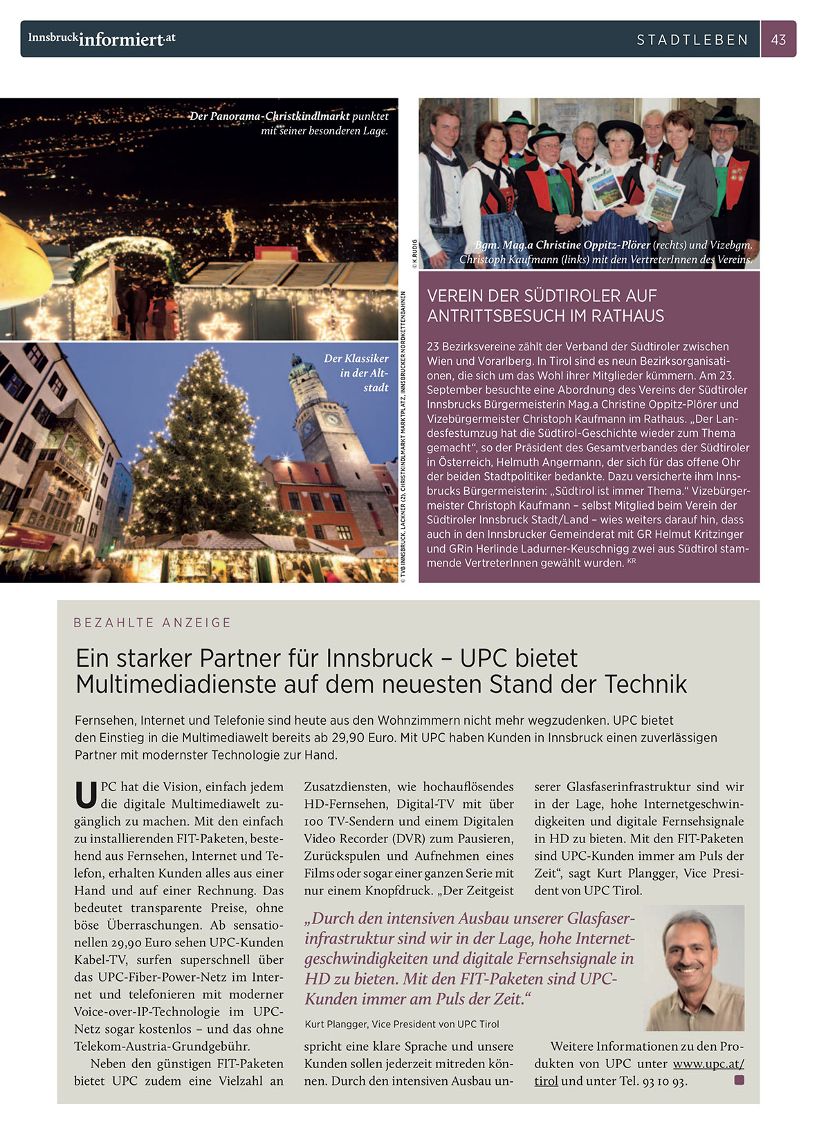 Zeit“, sagt Kurt Plangger, Vice President von UPC Tirol.