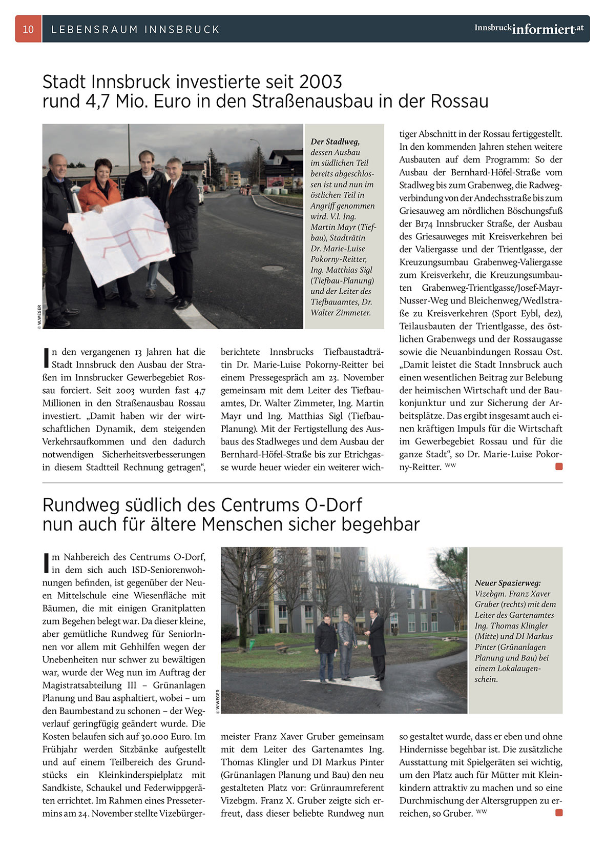 Stadt Innsbruck den Ausbau der Straßen im Innsbrucker Gewerbegebiet Rossau forciert. Seit 2003 wurden fast 4,7
