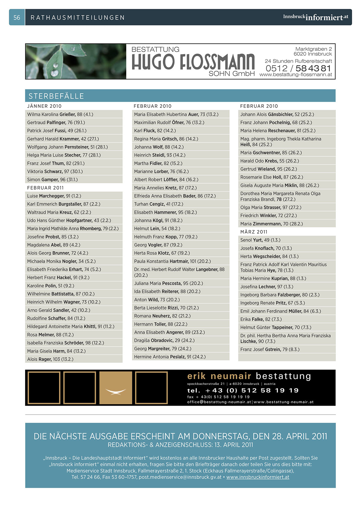 „Innsbruck informiert“ einmal nicht erhalten, fragen Sie bitte den Briefträger danach oder teilen Sie uns dies bitte mit: