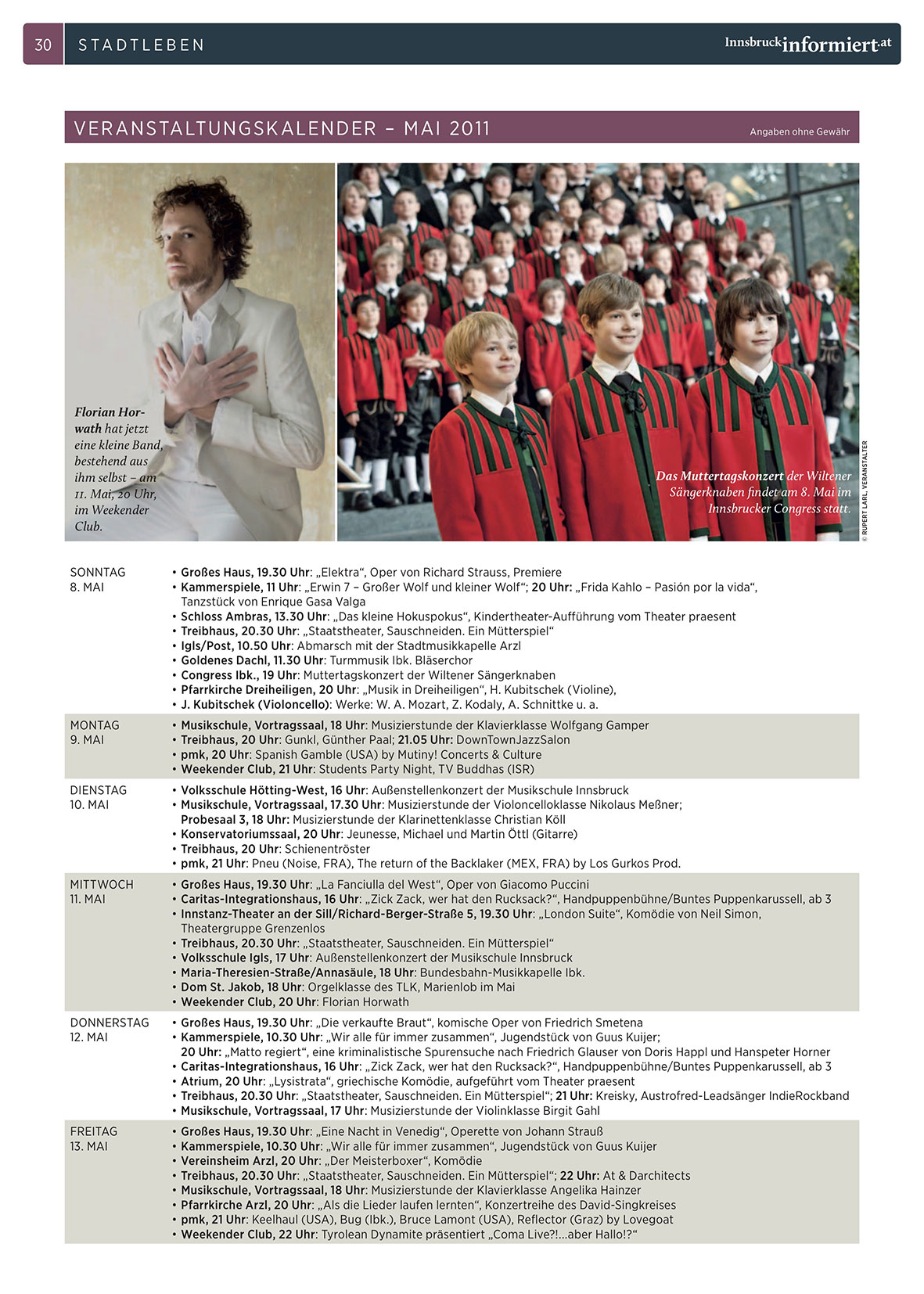 • Congress Ibk., 19 Uhr: Muttertagskonzert der Wiltener Sängerknaben