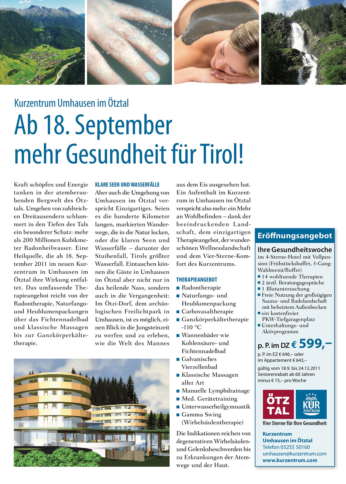 Ötztal ihre Wirkung entfaltet. Das umfassende Therapieangebot reicht von der