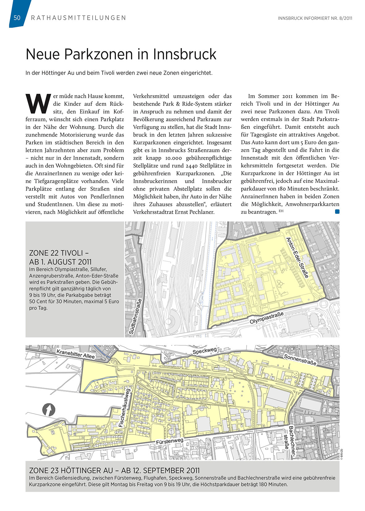 In der Höttinger Au und beim Tivoli werden zwei neue Zonen eingerichtet.