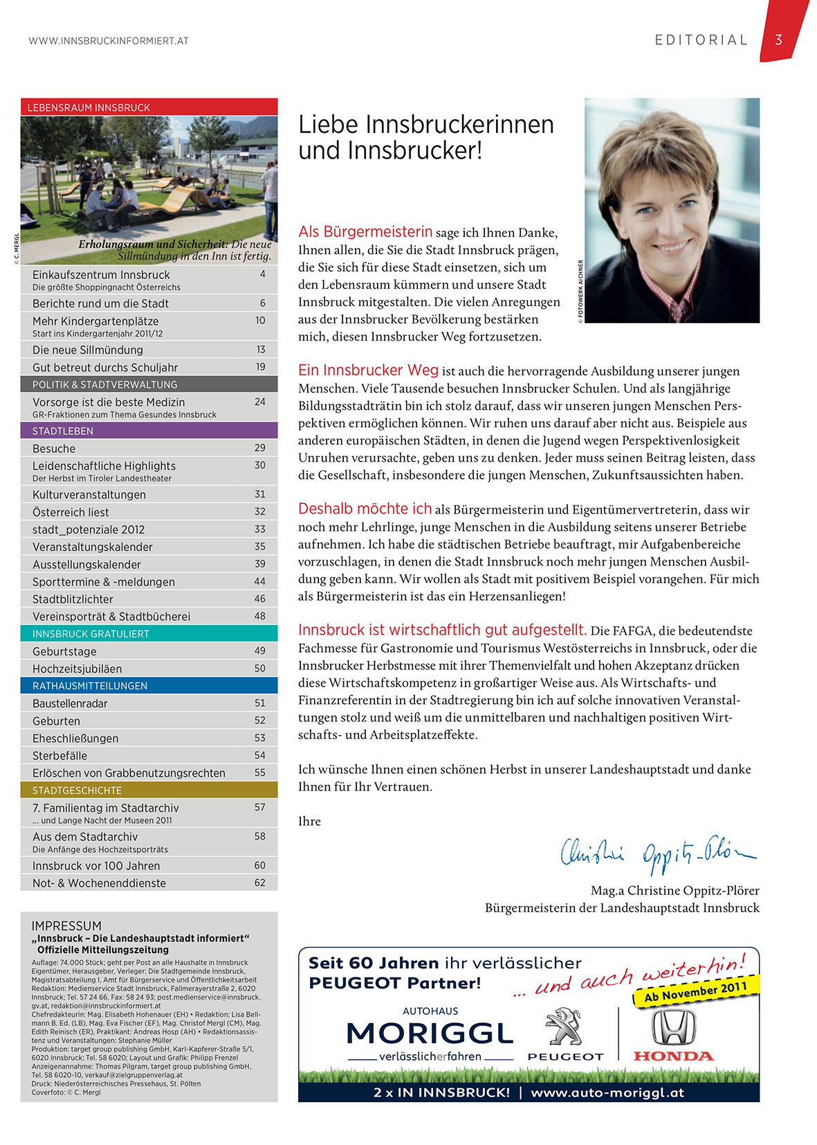Auflage: 74.000 stück; geht per post an alle haushalte in innsbruck