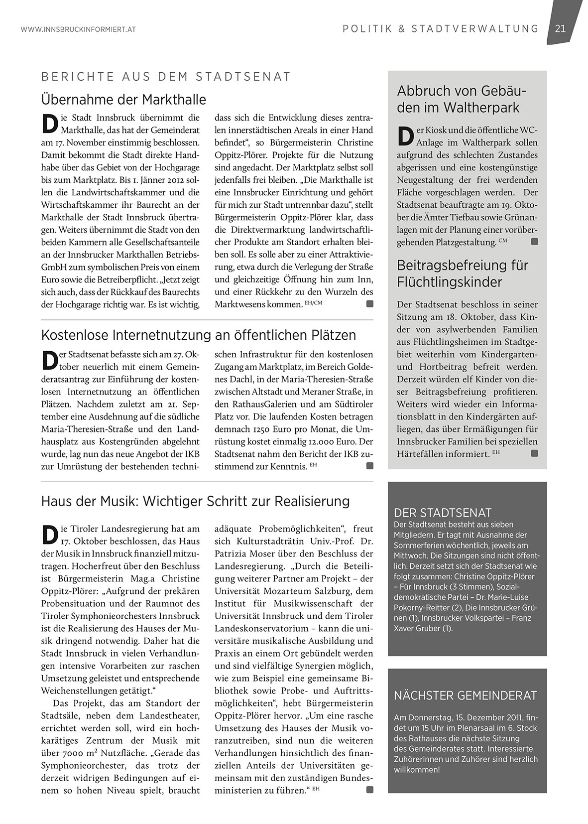 Markthalle der Stadt Innsbruck übertragen. Weiters übernimmt die Stadt von den