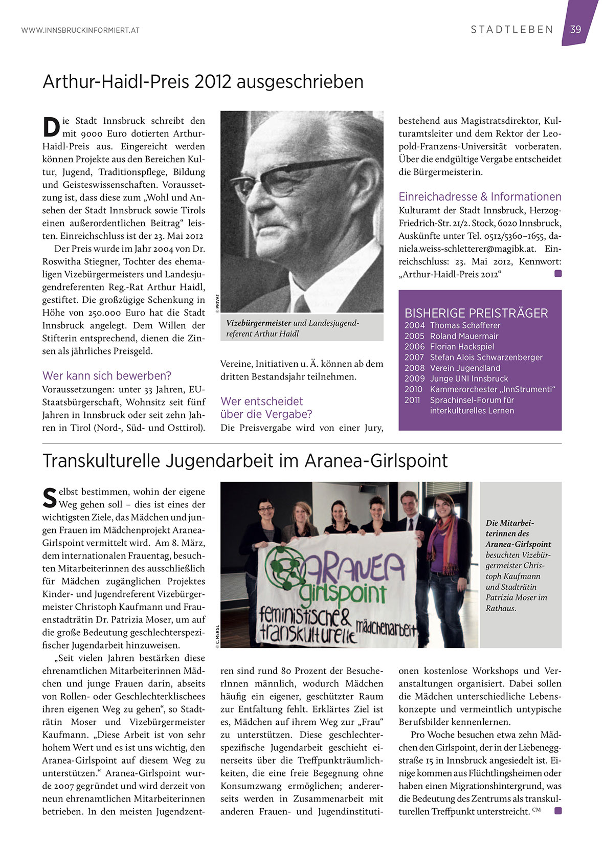 Arthur-Haidl-Preis 2012 ausgeschrieben