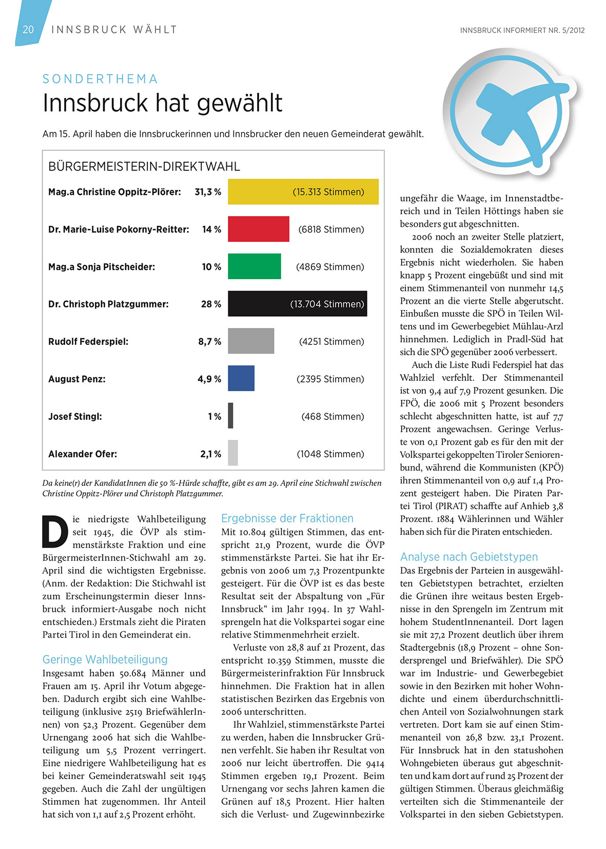 Am 15. April haben die innsbruckerinnen und innsbrucker den neuen gemeinderat gewählt.
