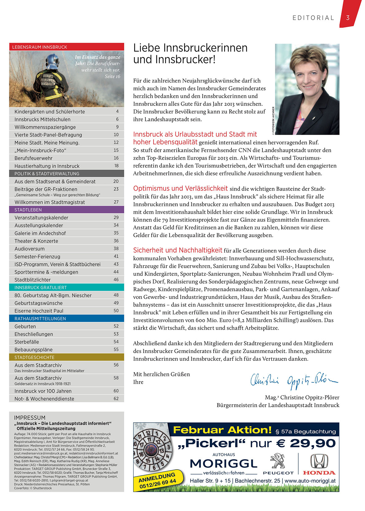 Auflage: 74.000 Stück; geht per Post an alle Haushalte in innsbruck