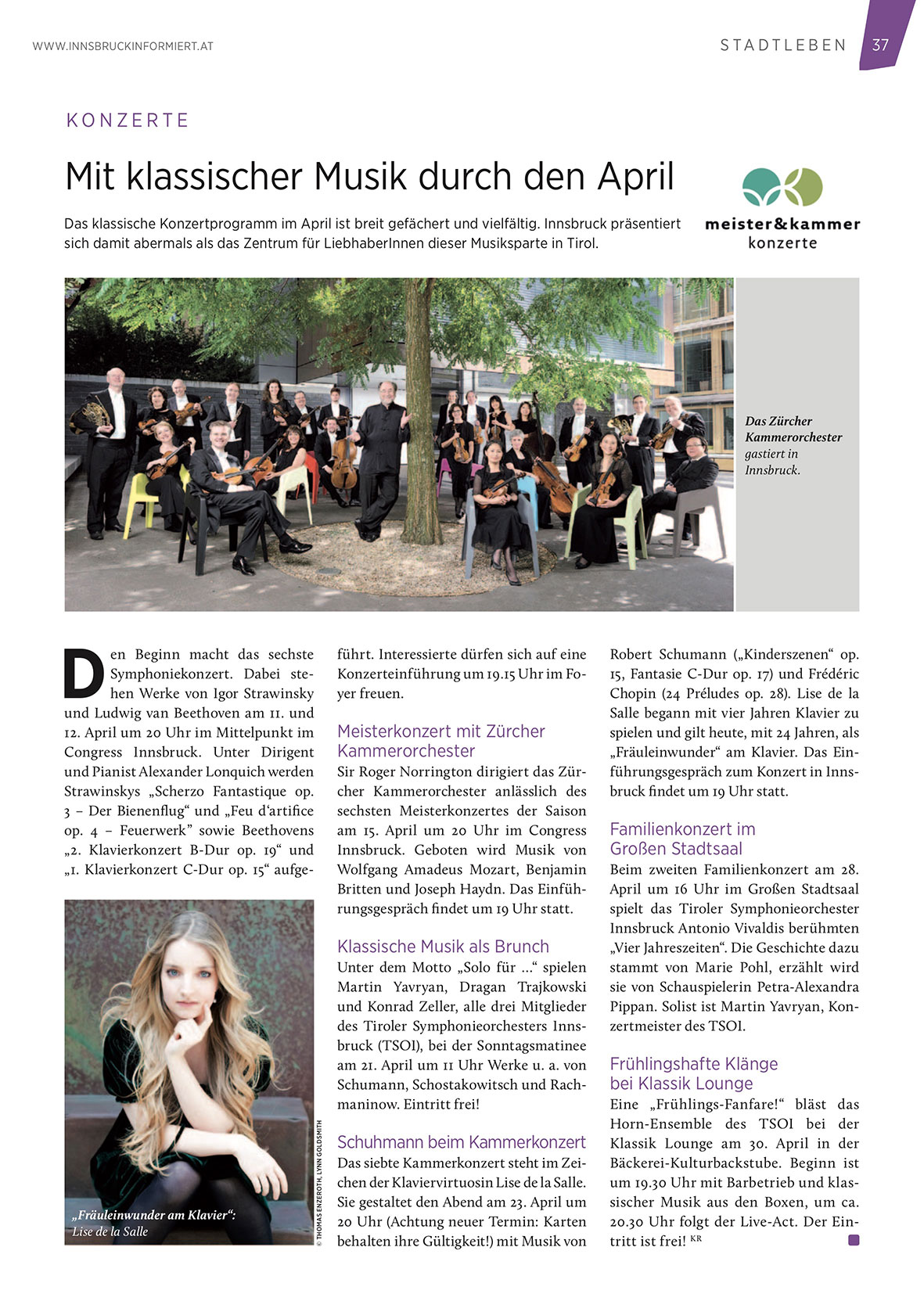 Das klassische Konzertprogramm im April ist breit gefächert und vielfältig. Innsbruck präsentiert