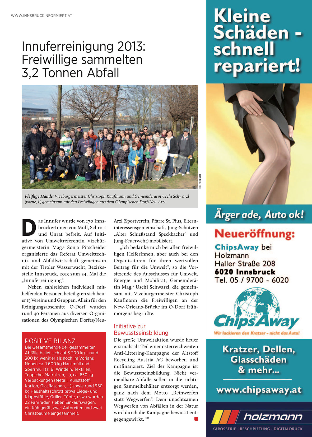 und Unrat befreit. Auf Initiative von Umweltreferentin Vizebürgermeisterin Mag. a Sonja Pitscheider