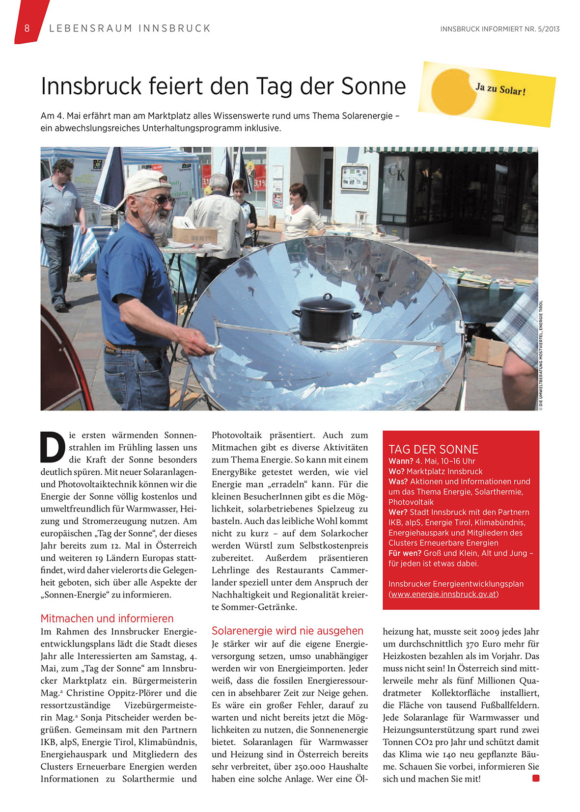 Mai, zum „Tag der Sonne“ am Innsbrucker Marktplatz ein. Bürgermeisterin