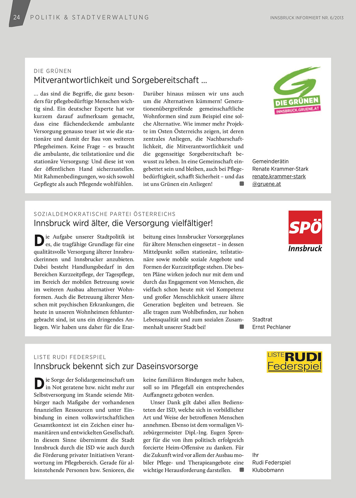 qualitätsvolle Versorgung älterer Innsbruckerinnen und Innsbrucker anzubieten.