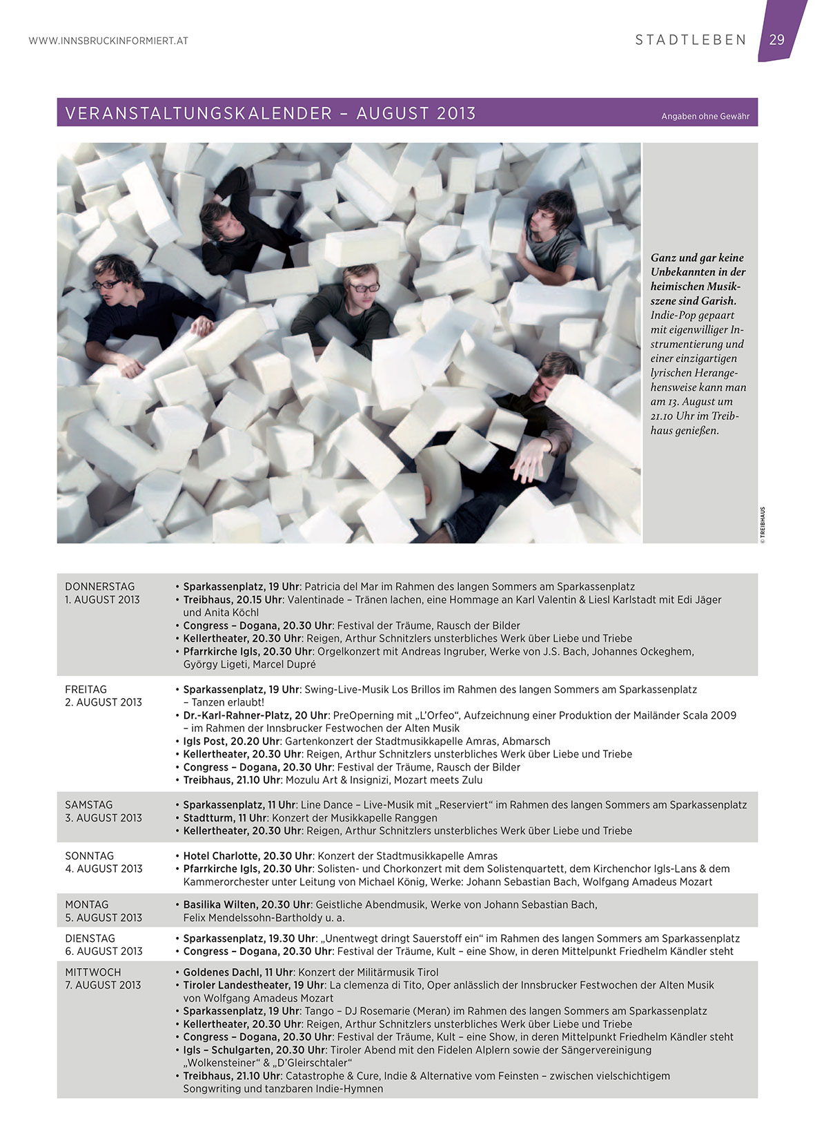• Pfarrkirche Igls, 20.30 Uhr: Solisten- und Chorkonzert mit dem Solistenquartett, dem Kirchenchor Igls-Lans & dem