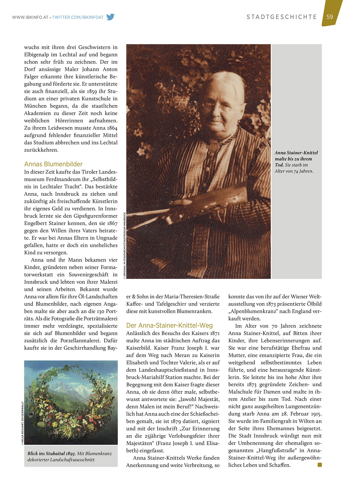 der Umbenennung der ehemaligen sogenannten „Hangfußstraße“ in AnnaStainer-Knittel-Weg ihr außergewöhnliches Leben und Schaffen.