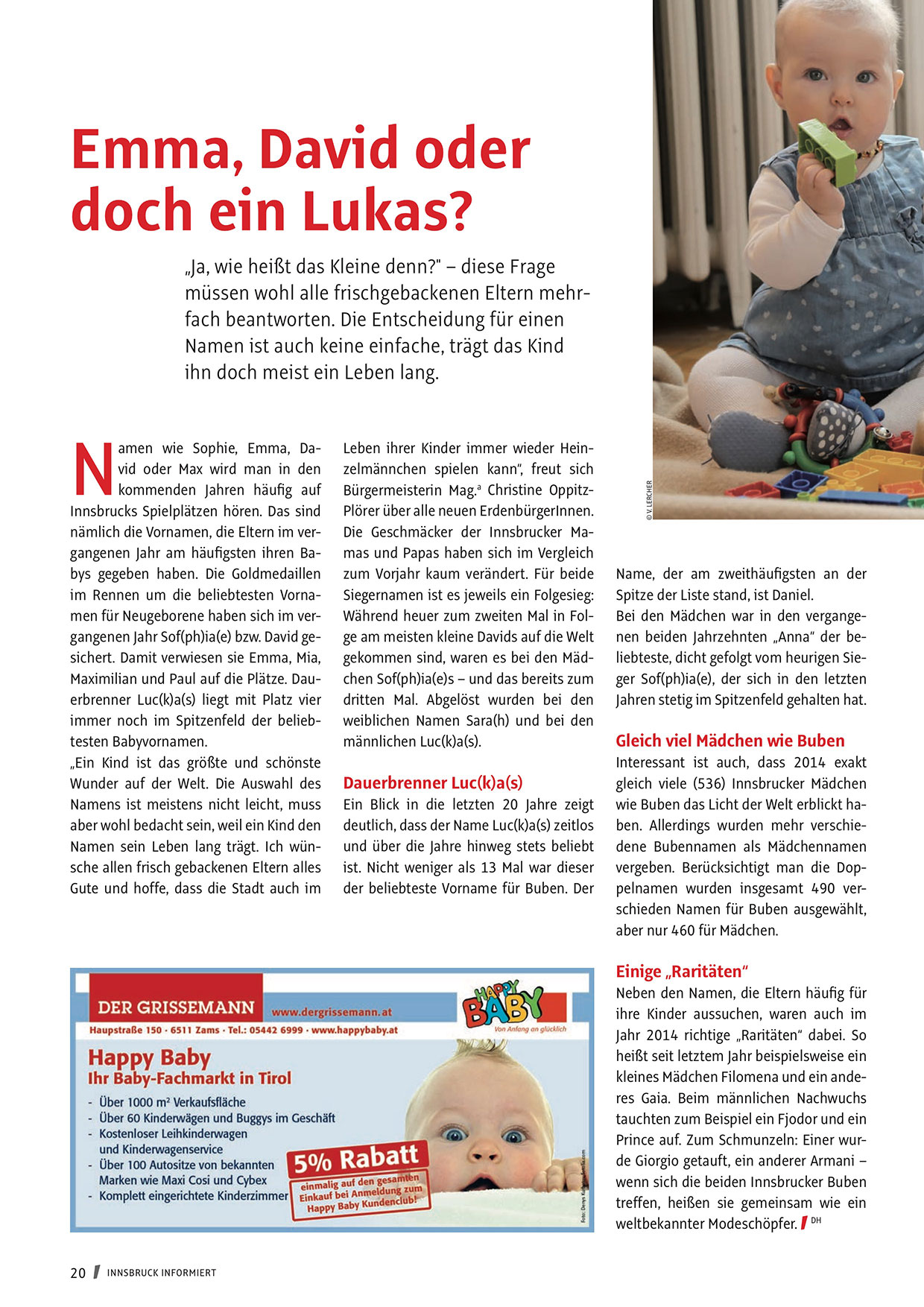 wie Buben das Licht der Welt erblickt haben. Allerdings wurden mehr verschiedene Bubennamen als Mädchennamen